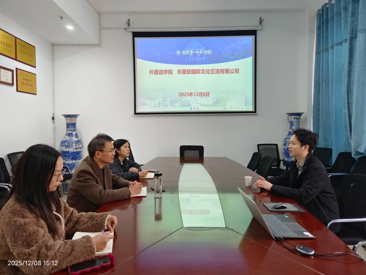 12月8日下午,外国语学院与华夏联(北京)国际文化交流有限公司举行校企合作交流座谈会,双方围绕大三、大四学生赴泰国从事对外汉语教学的实习、就业项目达成初步合作意向。