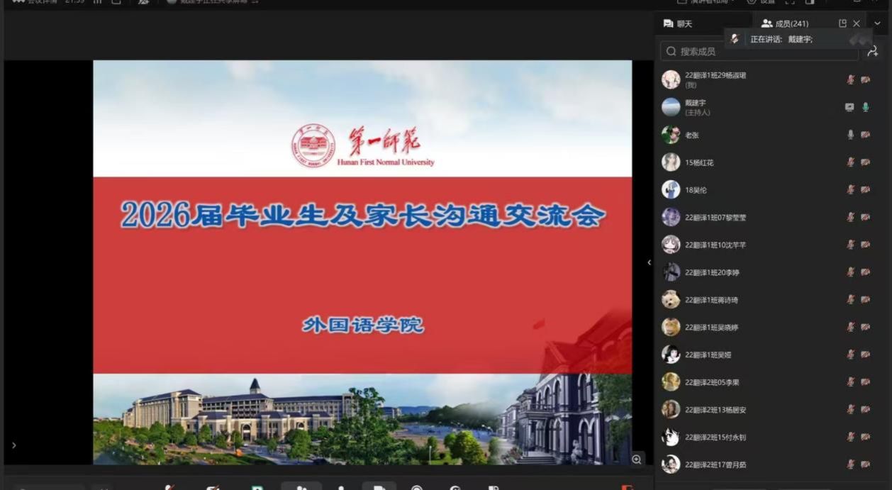 1月7日下午,外国语学院召开2026届毕业生及家长线上沟通交流会,300余名毕业生与家长齐聚云端,共话毕业就业与未来发展。