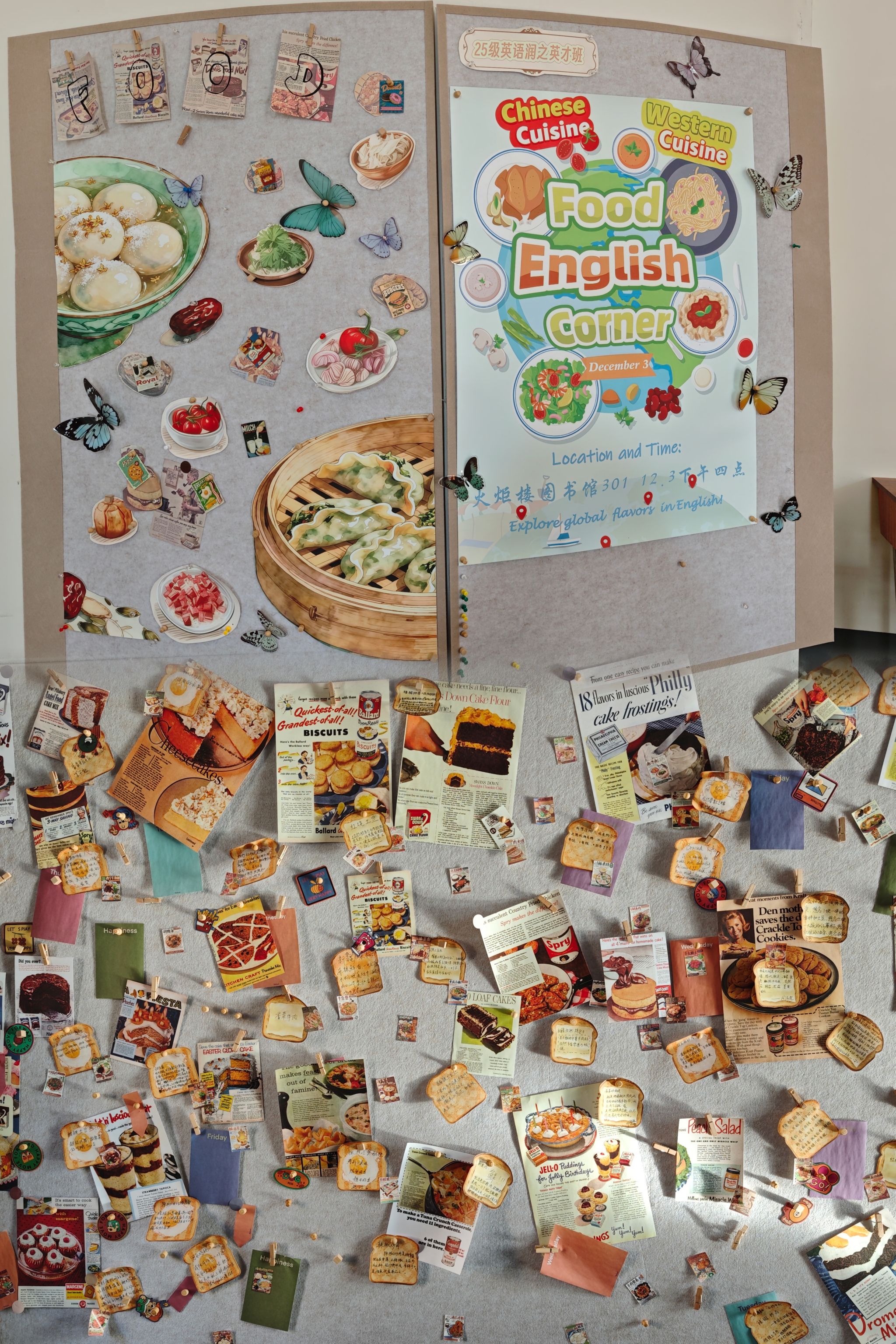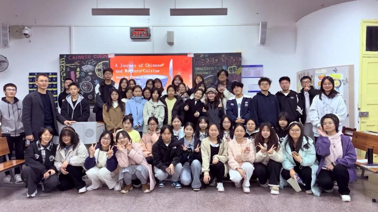 12月3日下午,外国语学院25级英语润之英才班在城南校区图书馆301成功举办“中西美食文化之旅”英语角活动。学院副书记兼班级辅导员戴建宇、副院长陈钰,班主任蒋倩、学业导师李双、贺满足受邀出席,与同学们共同参与这场融合语言实践与文化体验的主题活动。