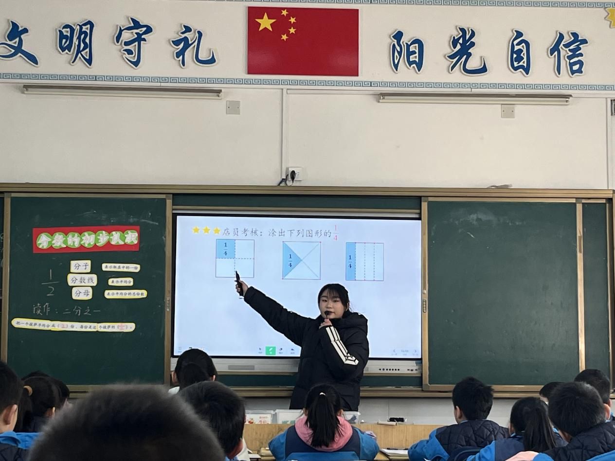 活动伊始,一场精彩的教学展示课拉开序幕。云鹰小学实习生代表刘幸美,以三年级分数的初步认识为授课内容,为师生呈现了一堂生动有趣的示范课。