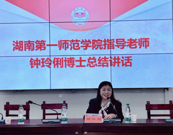 我校指导老师钟玲俐博士在总结中首先向校地双方的倾力支持致以诚挚感谢。她寄语全体实习生:要将顶岗实习期间积累的实践经验转化为专业成长的内生动力,在后续学习中持续沉淀、深耕钻研,以“追求卓越”的工匠精神锤炼教学本领,未来在教育岗位上勇挑重担、锐意进取,坚守育人初心,为家乡基础教育高质量发展书写青春篇章。