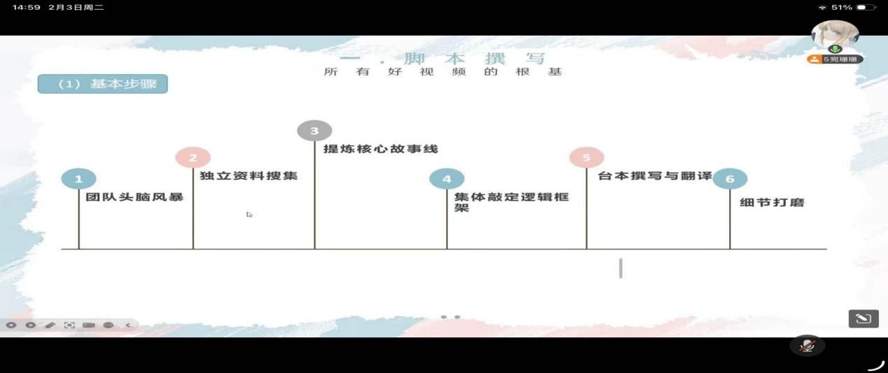 在答疑互动环节,同学们围绕选题策划、脚本优化、拍摄设备、字幕制作、赛事报名等问题踊跃提问。宛姗姗同学逐一细致解答,并针对性提出建议,线上交流氛围热烈融洽。